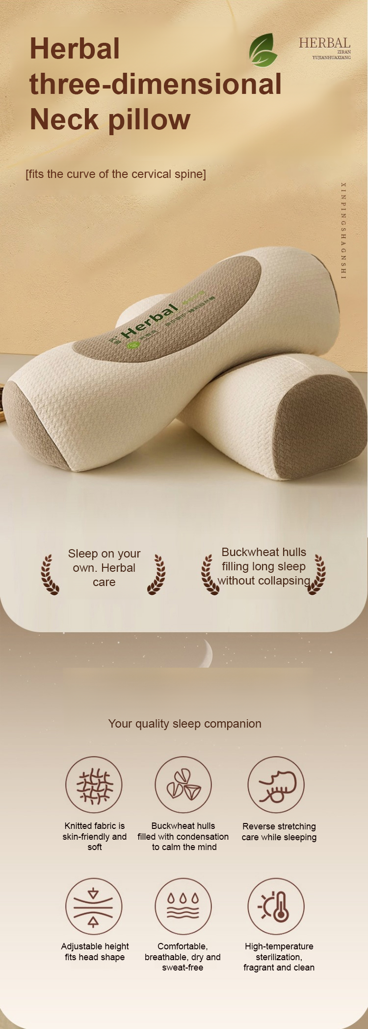 Buckwheat neck protection and traction pillow