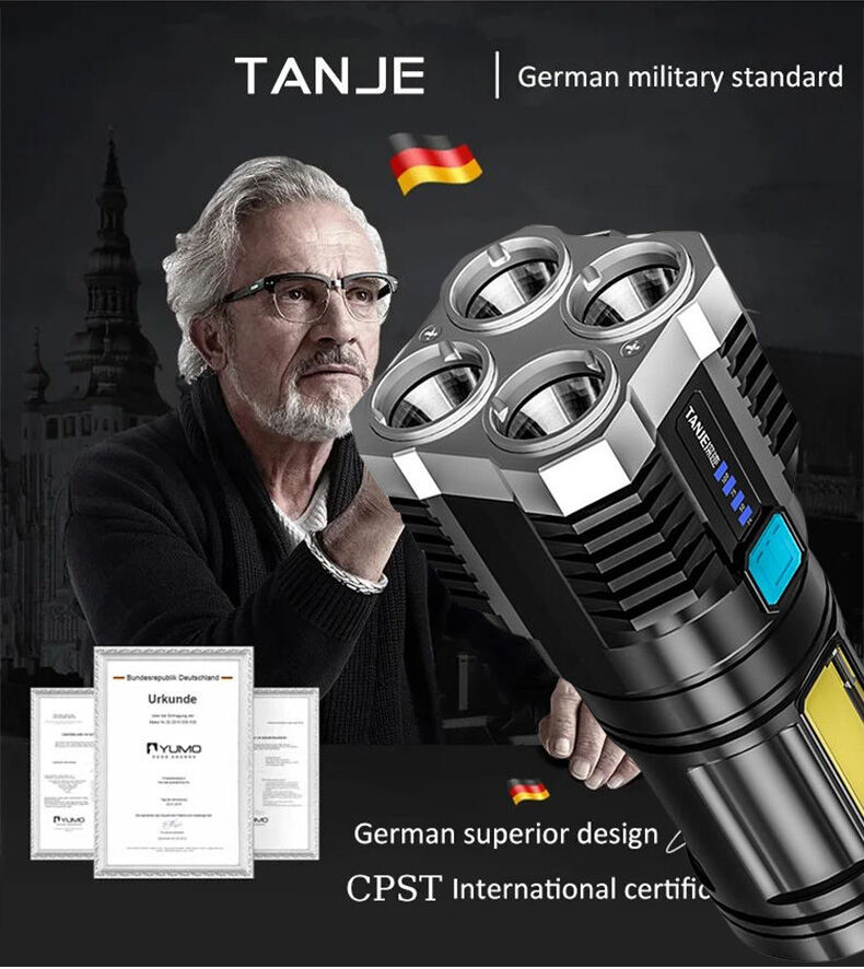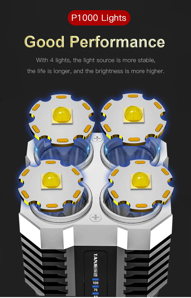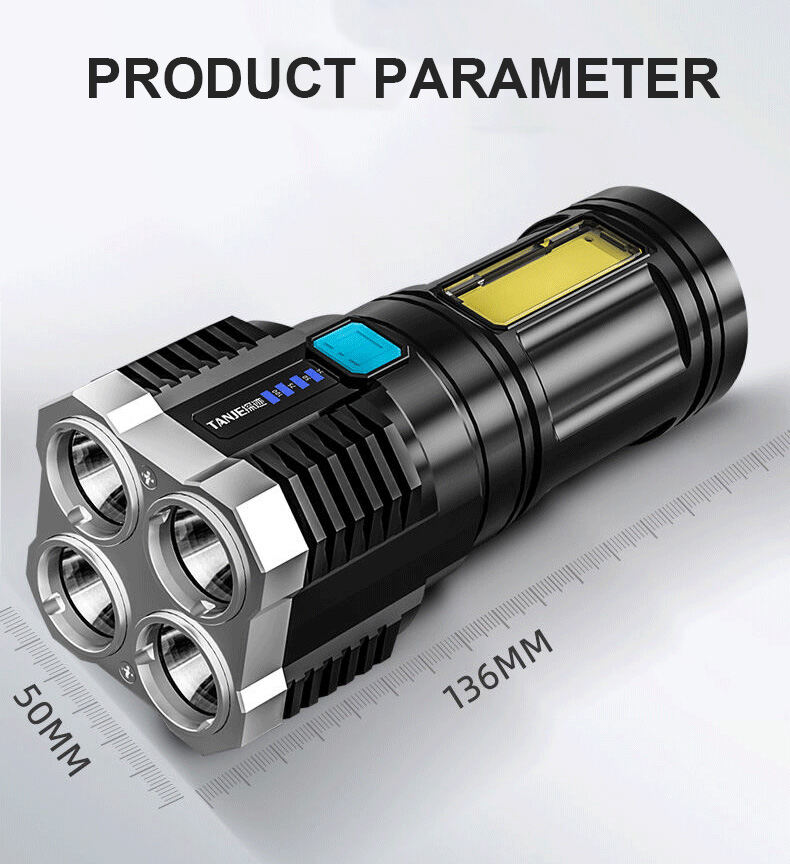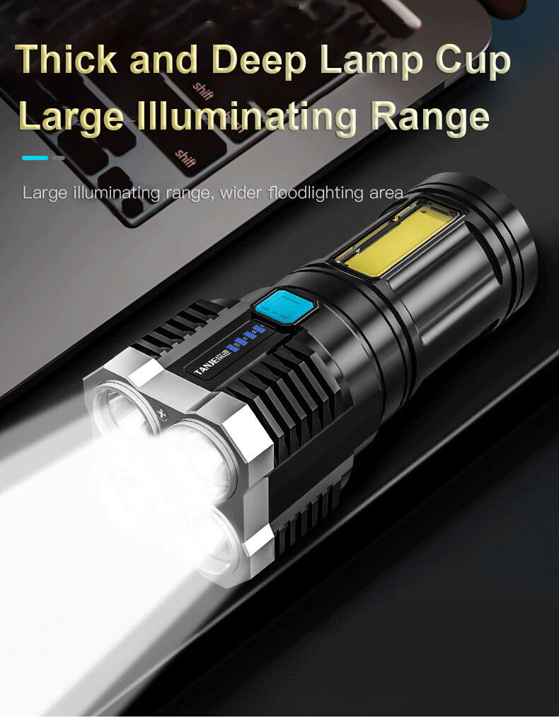 ✨👍Four-eyes strong light USB charging flashlight