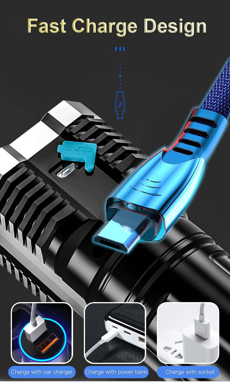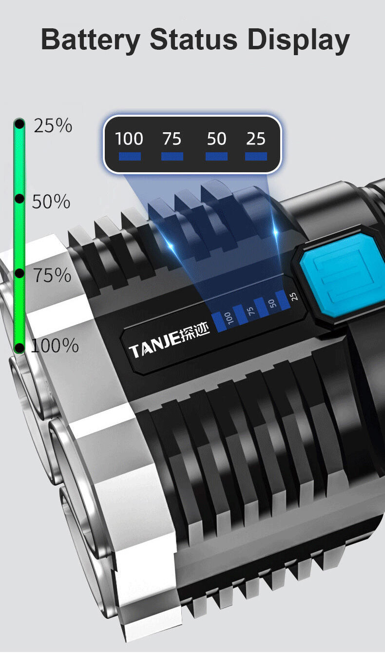 Its brightness and practicality are both top-notch! Equipped with an imported quad-core LED chip, it boasts a maximum brightness of 100,000 lumens and offers one-button switching between five modes: high beam, medium beam, low beam, strobe, and SOS. The high beam mode is suitable for outdoor exploration and nighttime operations; the low beam mode is ideal for home lighting and getting up at night; the strobe + SOS mode is extremely practical for emergency calls and can save lives in critical moments. With an ultra-long range exceeding 1200 meters and strong light penetration, it clearly illuminates the path ahead even in heavy fog and torrential rain.