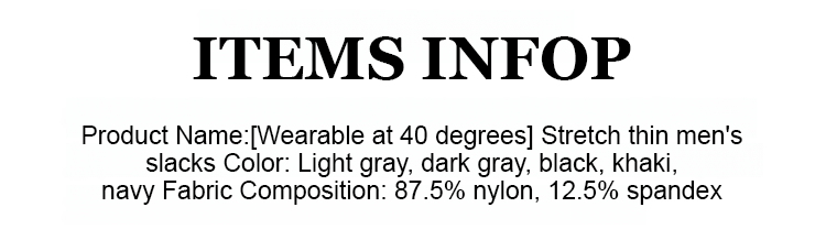 Breathable five-stretch slim-fit business suit pants.